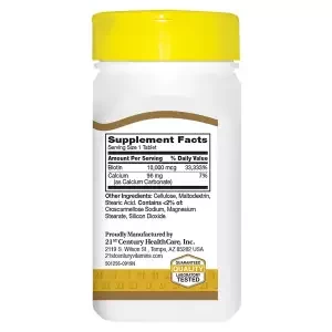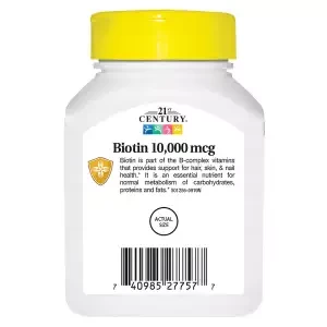 21st Century Biotin Tablets, 10,000 mcg, 120 CountBiotin is part of the B-complex vitamin family. Biotin 10,000mcg offers additional biotin for those who want higher biotin levels.