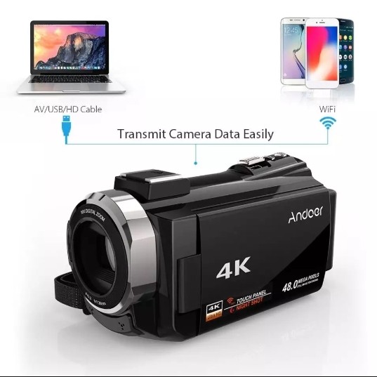 Andoer 4k 1080p 48mp wifi ডিজিটাল ভিডিও ক্যামেরা ক্যামকর্ডার রেকর্ডার সাথে 0.39x ওয়াইড অ্যাঙ্গেল ম্যাক্রো লেন্স এক্সটার্নাল মাইক্রোফোন নোভেটেক 96660 চিপ 3 ইঞ্চি ক্যাপাসিটিভ টাচস্ক্রিন ir ইনফ্রারেড নাইট সাইট 16x ডিজিটাল জুম