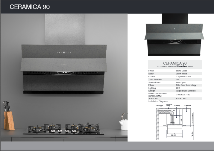Product details of Ceramica 90 90-CM Filter Free Cooker Hood/ Chimney