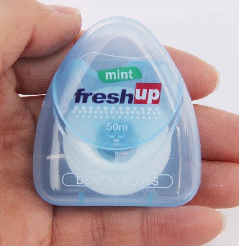 Dental Floss Fresh Up Mint 50m for teeth cleaning. Remove plaque from between your teeth and along the gum line where a tooth brush cannot reach. Reduce gum disease and tooth decay. Has a mint flavor to freshen your mouth.