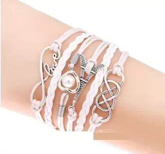 Product details of Fashion Tower infinity love pearl heart diy jewelry infinite double leather multilayer Charm bracelet women jewelry