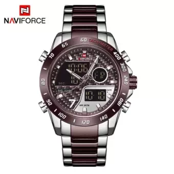 Product details of NAVIFORCE NF9171 Silver And Bronze Two-tone Stainless Steel Dual Wrist Watch For Men - Bronze & Silver