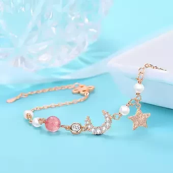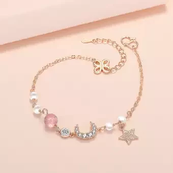 Product details of Pretty Stainless Steel Bracelet for Women Sweet Moon Star Zirconia Best Friend Bangle