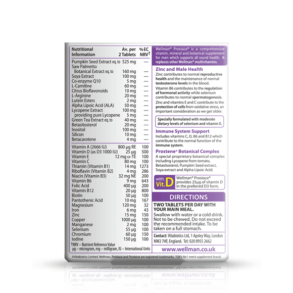 All round Health & Vitality - Wellman prostace also doubles up as comprehensive multivitamin to support general health & vitality