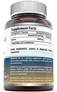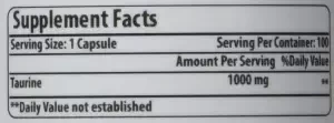 OPTIMIZED DOSE Our taurine 1000 mg supplement provides the dose of l taurine most frequently recommended by nutritionists. Every bottle contain 100 capsules of 1000 mg taurine! That's more than a 3 month supply of the commonly recommended dosage