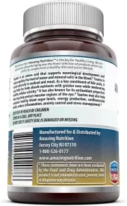POTENT, PURE TAURINE Amazing Nutrition Taurine 1000mg Supplement Contains 100% Pure Taurine With No Unnecessary Fillers Of Any Kind, Preservatives Or Artificial Flavors Or Sweeteners, Making It The Best Way To Truly Benefit From The Amino Acid Taurine