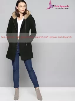 Size & FitThe model (height 5'4") is wearing a size LSpecifications Sleeve Length: Long Sleeves Type: ParkaCollar: Hooded Print or Pattern Type: SolidLength: Regular Closure: ZipLining Fabric: Polyester Number of Pockets: 2Hemline: Straight Surface Styling: Faux Leather Trim