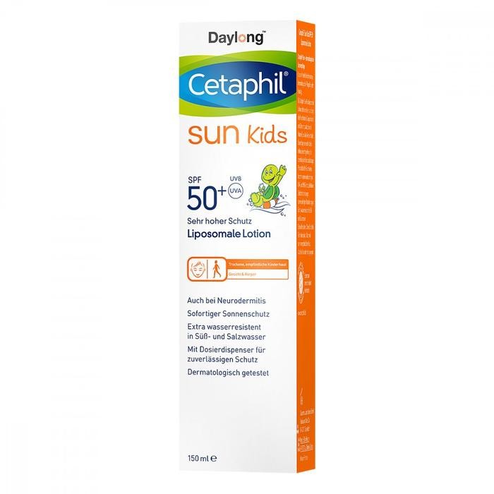 Children's skin is particularly sensitive to UV radiation. As many as five sunburns during childhood can increase the risk of skin cancer by 70-80%, and the consequences often do not become apparent until many years later.Cetaphil® stands for high-quality dermatological care for every skin type. The Cetaphil Sun Kids Liposomal Lotion SPF 50+ is specially formulated to meet the specific needs of sensitive baby and child skin and uses dexpanthenol and glycerin. In addition, soothing aloe vera and vitamin E are included. Photo stable UV filters provide highly effective and immediate UVA and UVB protection, effective cell protection2 and prevent sun-induced skin aging.