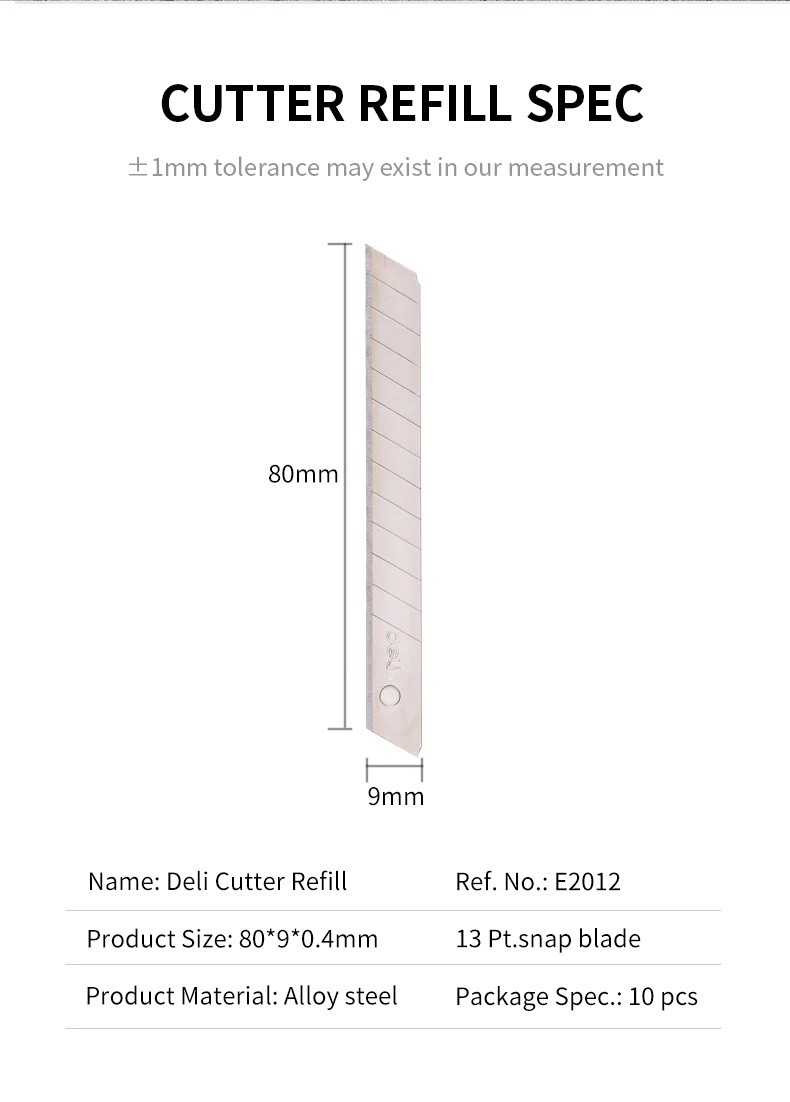 Specifications of Deli NT Cutter Blade E2012 (Small) - 10pc