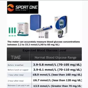 FAD-GDH System Blood sample: Fresh capillary whole blood Calibration sample: Venous plasma Test range: 1.1-33.3mmol/L Test time: 5 seconds Blood volume: 0.6ul HCT: 30 - 60% Expiry date: 24 months Battery lifetime: 1000 time