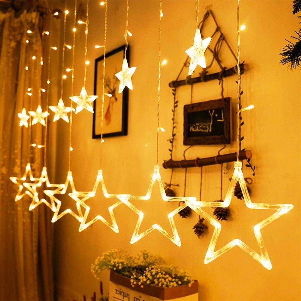 Golden Big Star Curtain Light, 12 Hanging Golden Star String Lights, Drawing room decoration LED Curtain String Light (Darun Online Shop)