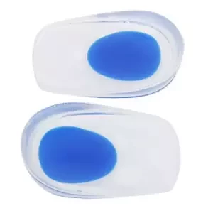 Transparent silicone provides high cushioning to heel, absorbs shock and reduces peak loading. Soft spots relieve pressure at the base of the calcaneus & provides focused pain relief. Ergonomic design with optimal thickness provides effective cushioning for comfort and makes it easy to put inside shoes.