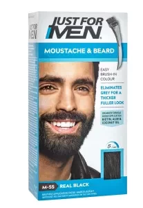 Just For Men Mustache & Beard Real Black M-55 Brush-In Color Gel (USA)5 easy minutes. Penetrates coarse hair. Contains multiple applications. The world's No. 1 men's haircolor. Easy Brush In: Specially designed brush makes application simple. Gray is gone in 5 minutes. Formulated for Facial Hair: Penetrates coarse, resistant facial hair. No-drip thick gel conditions and softens as it colors. Keeps Your Facial Hair Looking Its Best: perfectly matches your natural hair color and Just For Men shampoo-in haircolor shades too. Gray target technology. Made in USA of US and imported parts.Preparation instructionsDirections for Use: Read and follow directions on enclosed leaflet. Shade Selection Tip: If you can't decide between 2 shades, or you have a little gray, go with the lighter shade for the most natural look.