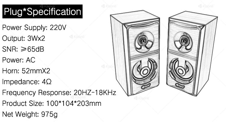 Specifications of Kisonli - AC 9001 Wood PC Speaker