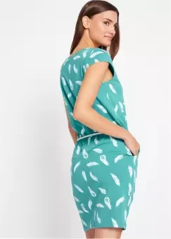 Features: Short sleeve, round neck, short mini dress, slim fit, Green, Navy and Salmon Red Floral Print dress, tshirt dress