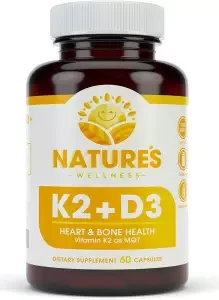 Natures wellness, Vitamin K2 (mk7) with D3 Supplement for Best Absorption - 2-in-1 Support for Heart Health and Strong Bones, Vitamin D & K Complex, D3 5000 IU + K2 100 mcg, 60 Count, USA