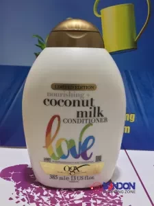 OGX Nourishing+ Coconut Milk pH Balanced Conditioner 385mlFind your perfect hair match with OGX, now with NEW upgraded pH balanced formulas for salon-quality, gentle cleansing that will help give you stronger hair with more shine, less frizz and long-lasting smoothness. OGX Nourishing+ Coconut Milk helps to add strength, elasticity and hydration into hair. This tropical blend helps bring out your hair's natural strength and moisturises for total nourishment. How to useAfter shampooing, apply generously to hair, working through to ends. Wait 3-5 minutes. Rinse hair thoroughly.IngredientsAqua/Water/Eau, Cetearyl Alcohol, Cetyl Alcohol, Behentrimonium Chloride, Cocos Nucifera (Coconut/Noix De Coco) Oil, Cocos Nucifera (Coconut/Noix De Coco) Fruit Extract, Albumen, Hydrolyzed Milk Protein, Glycerin, PPG-3 Benzyl Ether Myristate, Dimethicone, Polyquaternium-47, Steareth-20, Disodium EDTA, Isopropyl Alcohol, Citric Acid, Sodium Hydroxide, Sodium Benzoate, Pentaerythrityl Tetra-di-t-butyl Hydroxyhydrocinnamate, Leuconostoc/Radish Root Ferment Filtrate, Sodium Chloride, Sodium Carbonate, Parfum/Fragrance.Warning: Use only as directed. Avoid contact with eyes. If contact occurs, rinse immediately. Keep away from children.