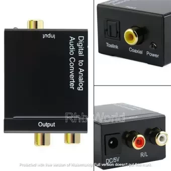 Converts L/R analog audio to Digital S/PDIF Coaxial RCA or Optical Toslink digital audioEasily Convert Analog Stereo Audio (Red and White) Jacks to Toslink optical or Coaxial SPDIF Digital AudioInputs: Left and Right (Red/White) RCA Stereo Analog ConnectionsOutputs: Digital Coaxial RCA and Optical Toslink Connections
