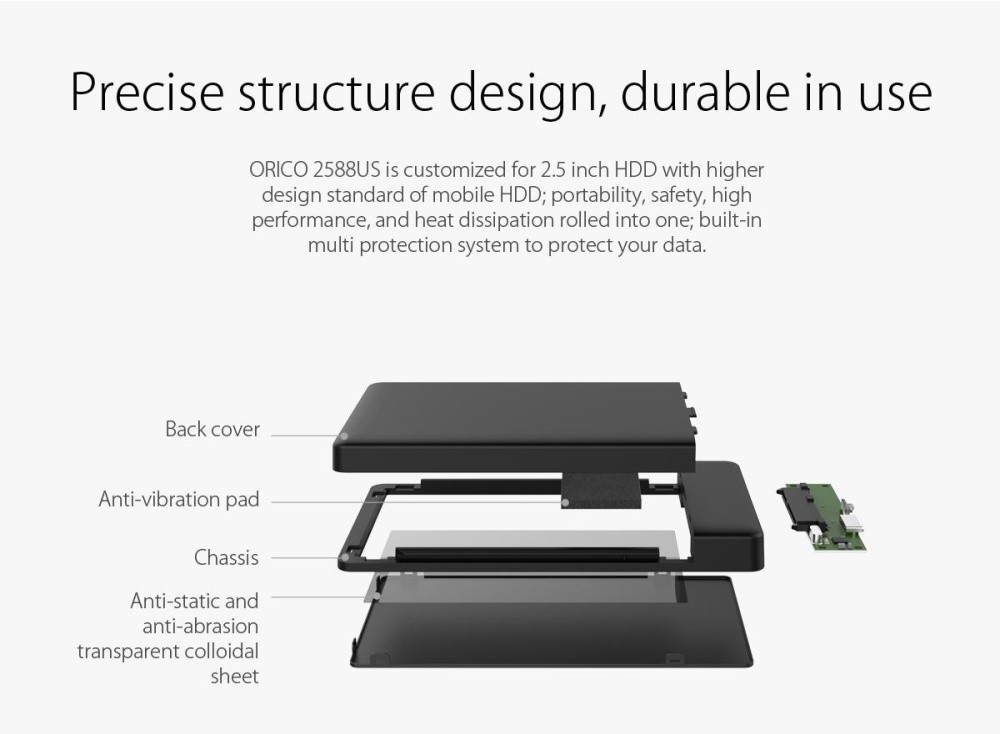 Product details of ORICO 2588US 2.5 SATA to USB 2.0 Hard Disk Drive External Enclosure Case