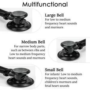 5 way convertible design: large diaphragm, small diaphragm, adult size bell, medium size bell, infant size bell