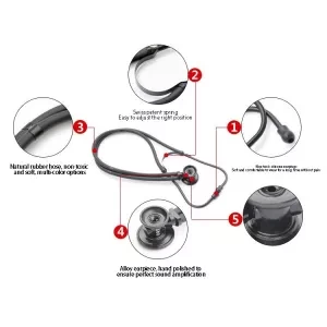 This Stethoscope is a Sprague Rappaport Type and its mutifunctional double head chestpiece is designed for all auscultation.