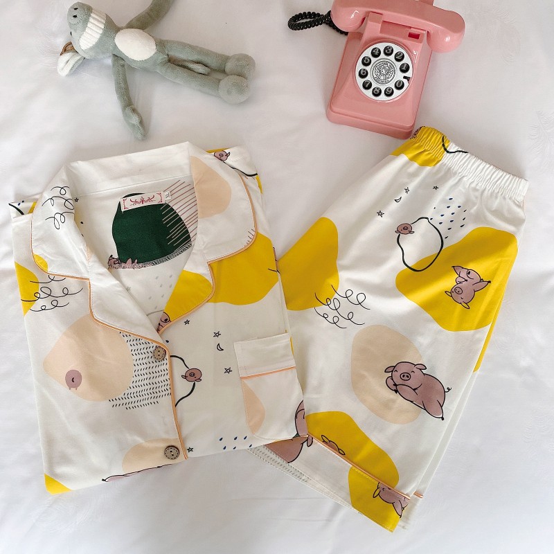 Product details of Summer Womens Nightwear V Neck Cartoon Short Sleeve And Short Pants Korean Pyjamas Sleepwear Set Loungewear Plus Size Clothing