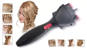 3.) Turn the rods around each otherAs soon as the individual strands are tightly interlocked, slide the switch downwards to level 2. The head of the device now turns and twists both strands together. When the braid is finished, set the unit to 0 and remove the strands from the hooks by pressing the two black buttons. Attach the braid with a rubber or BaByliss clip (sold separately).