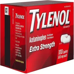 100-count of Tylenol Extra Strength Caplets with 500mg of acetaminophen to provide temporary relief of minor aches and pains and help reduce fever