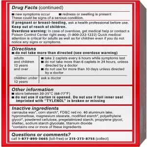 Specifications of Tylenol Extra Strength Caplets with 500 mg Acetaminophen Pain Reliever Fever Reducer, 100 Count, USA SKU: dq-fsWBG435