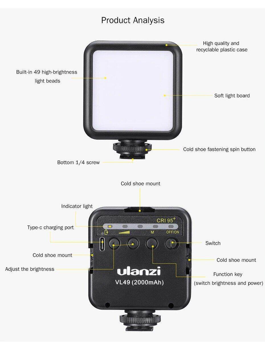 Ulanzi VL49 6W Mini LED Video Light 2000mAh Built-in Battery