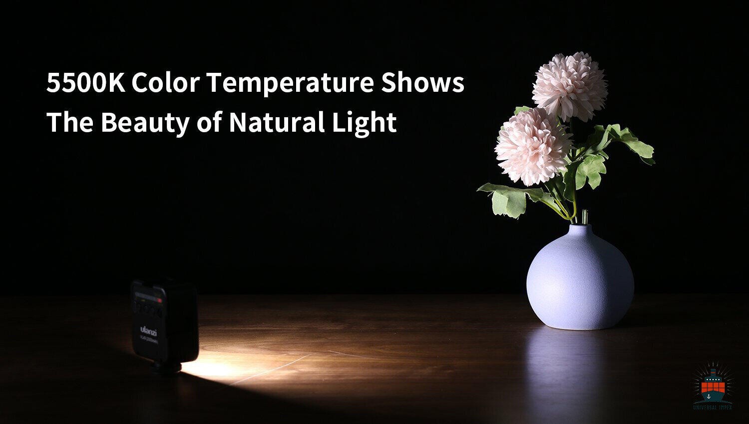 1. With soft light board not glaring. 2. Built-in lithium battery with type-c interface charging. 3. 5500K color temperature shows the beauty of natural light.