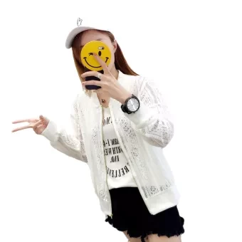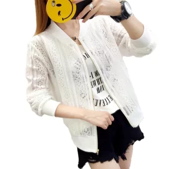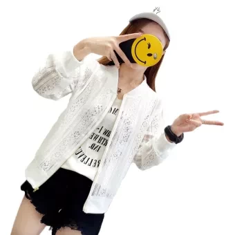 Product details of 2020 Women's Summer Baseball Jersey Outwear Cardigan Lace Mesh Hollow Sweatshirt Outcoat Long Sleeve Zipp