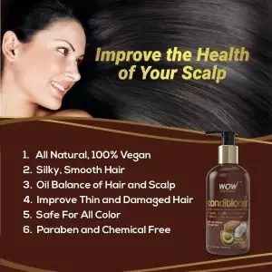 Suits all hair types Wow skin science hair conditioner works by optimizing natural oil balance of hair and scalp. That's the reason it works on all hair types. Delivers intense conditioning the natural and nourishing ingredients present in Wow skin science hair conditioner deliver deep moisture and nutrition to hair and scalp, softening and smoothing down hair cuticles to deliver silky soft and very glossy hair. Split ends, breakage, frizz, flyaway no more Wow skin science hair conditioner is your single stop solution to common hair issues like split ends, breakage, hair fall, frizz and flyaway.