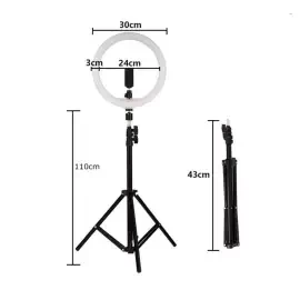 10'' Ring Light 1pcs 78'' Tripod 1Pcs 10 blocks, 3 colors, stepless dimming, white light, warm light, soft light Uses: With the studio to fill the light photo, portrait self-timer fill light Small studio ring led light usb photo fill light; Make up Color temperature: 2700K-5500K photography / Live Dimmable: YES Led ring light Size:26CM Number of beads: 120 Voltage: 2V5A Main field of application: direct lamp fill beauty light Source type light: LED 26 CM Ring light Lamp*1 Color:Black Made in China