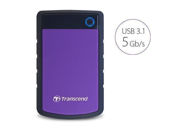 Transcend's StoreJet 25H3 ruggedized external hard drive combines supreme shock-resistant qualities with the USB 3.1 Gen 1 interface, allowing for ultra-fast file transfers and the highest level of anti-shock protection. With up to 4TB storage capacity, the StoreJet 25H3 eliminates all fears of running out of storage.